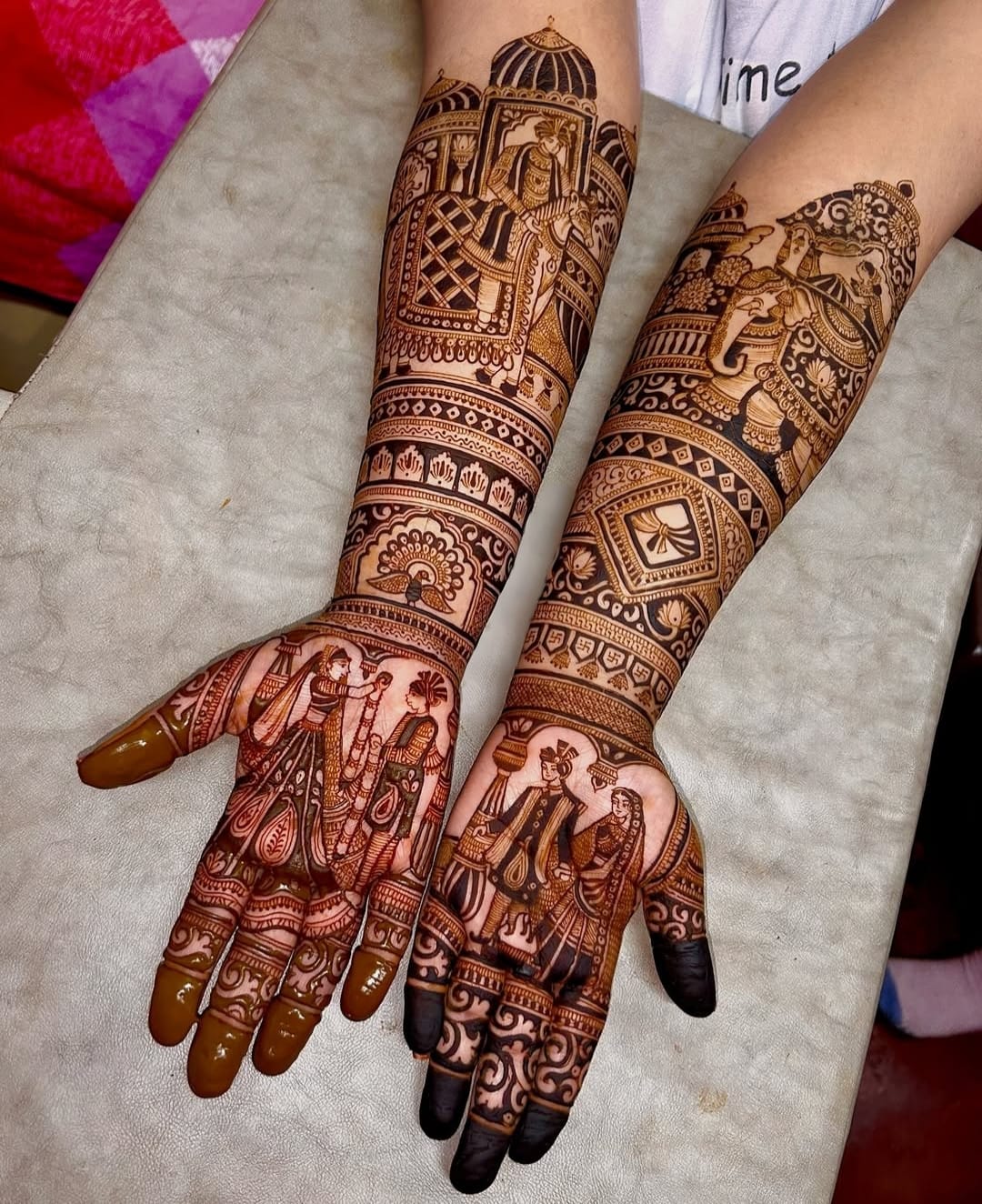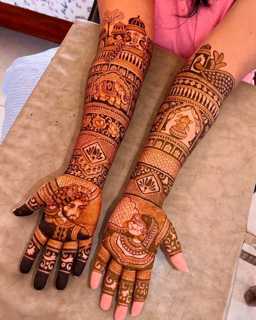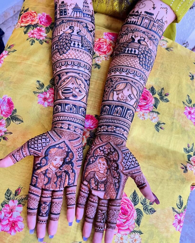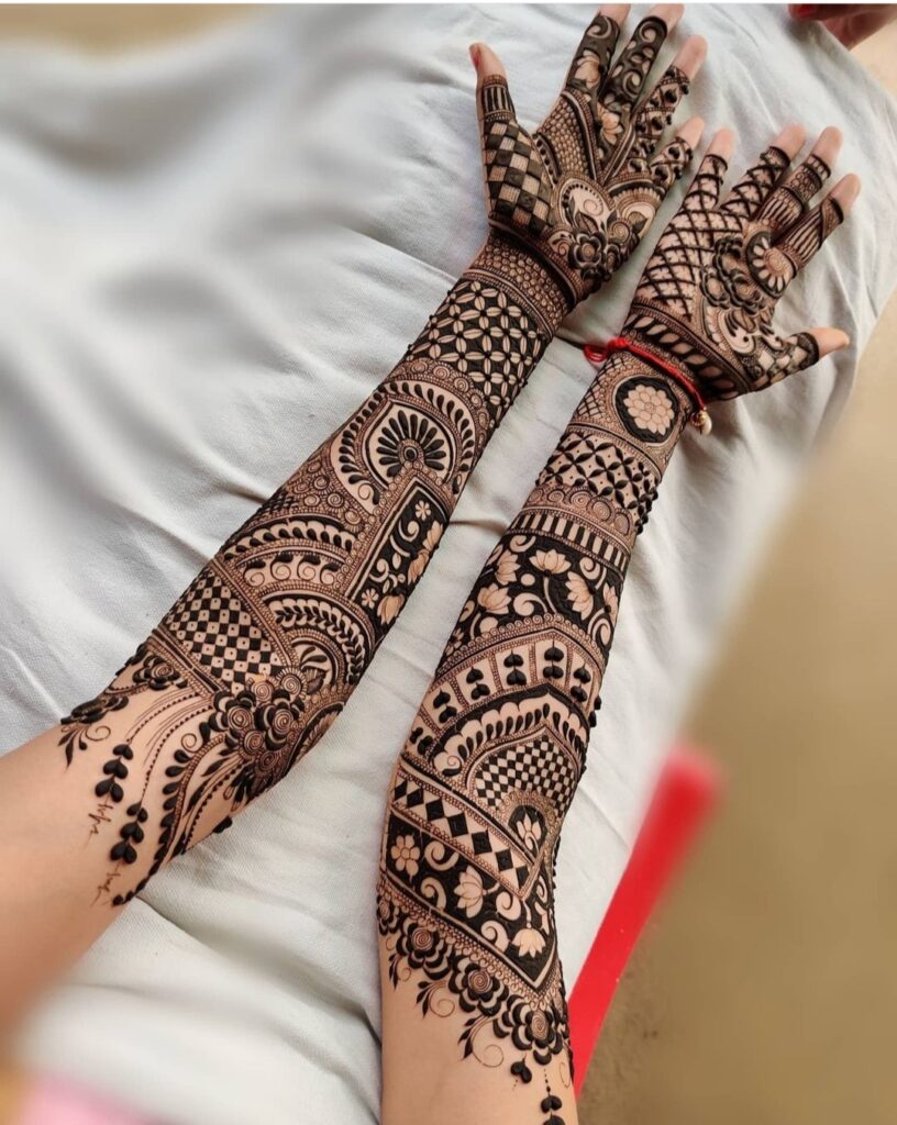 Add a beautiful touch to your pre-wedding events with elegant and joyful mehndi patterns for the bride, groom, and guests.