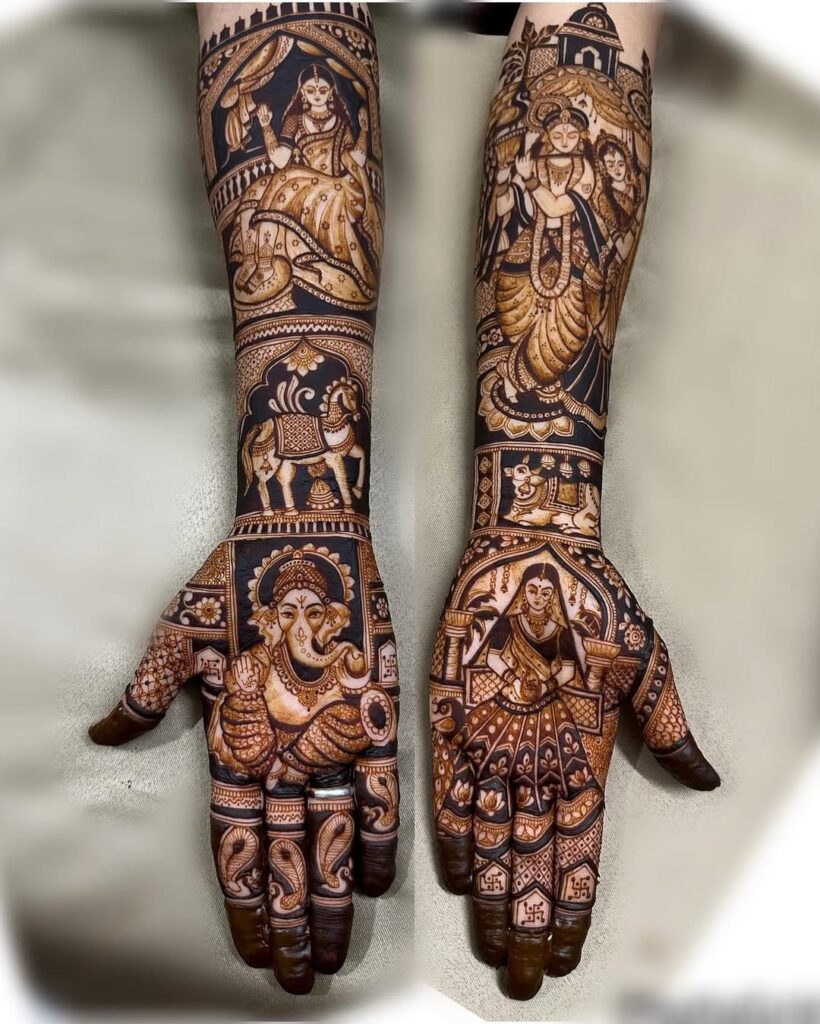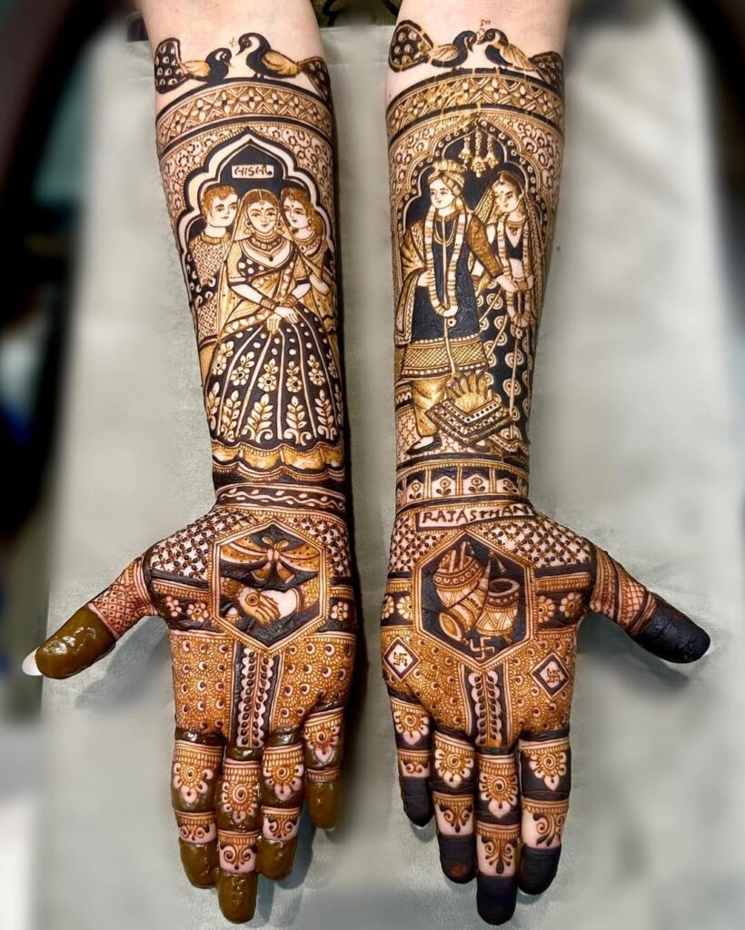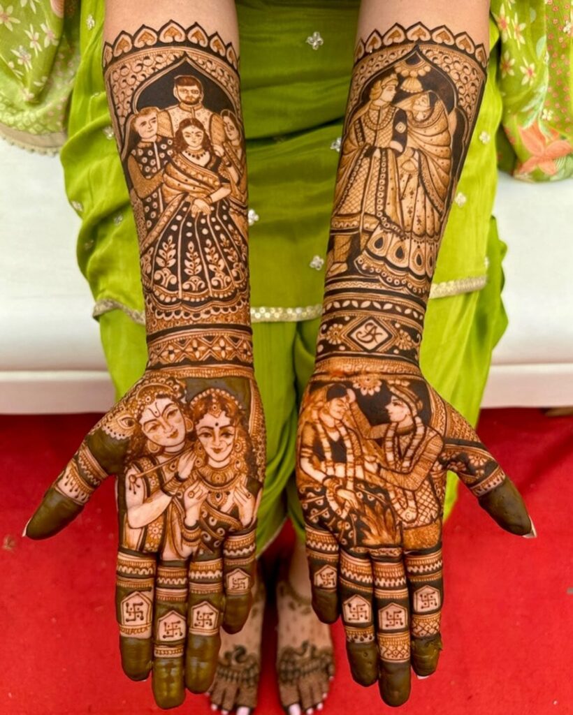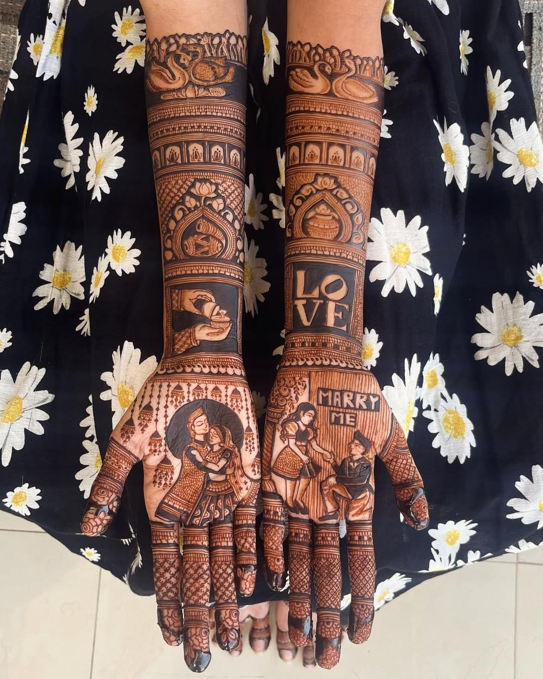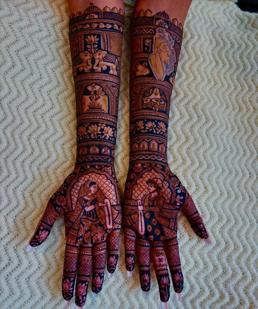 Add a beautiful touch to your pre-wedding events with elegant and joyful mehndi patterns for the bride, groom, and guests.