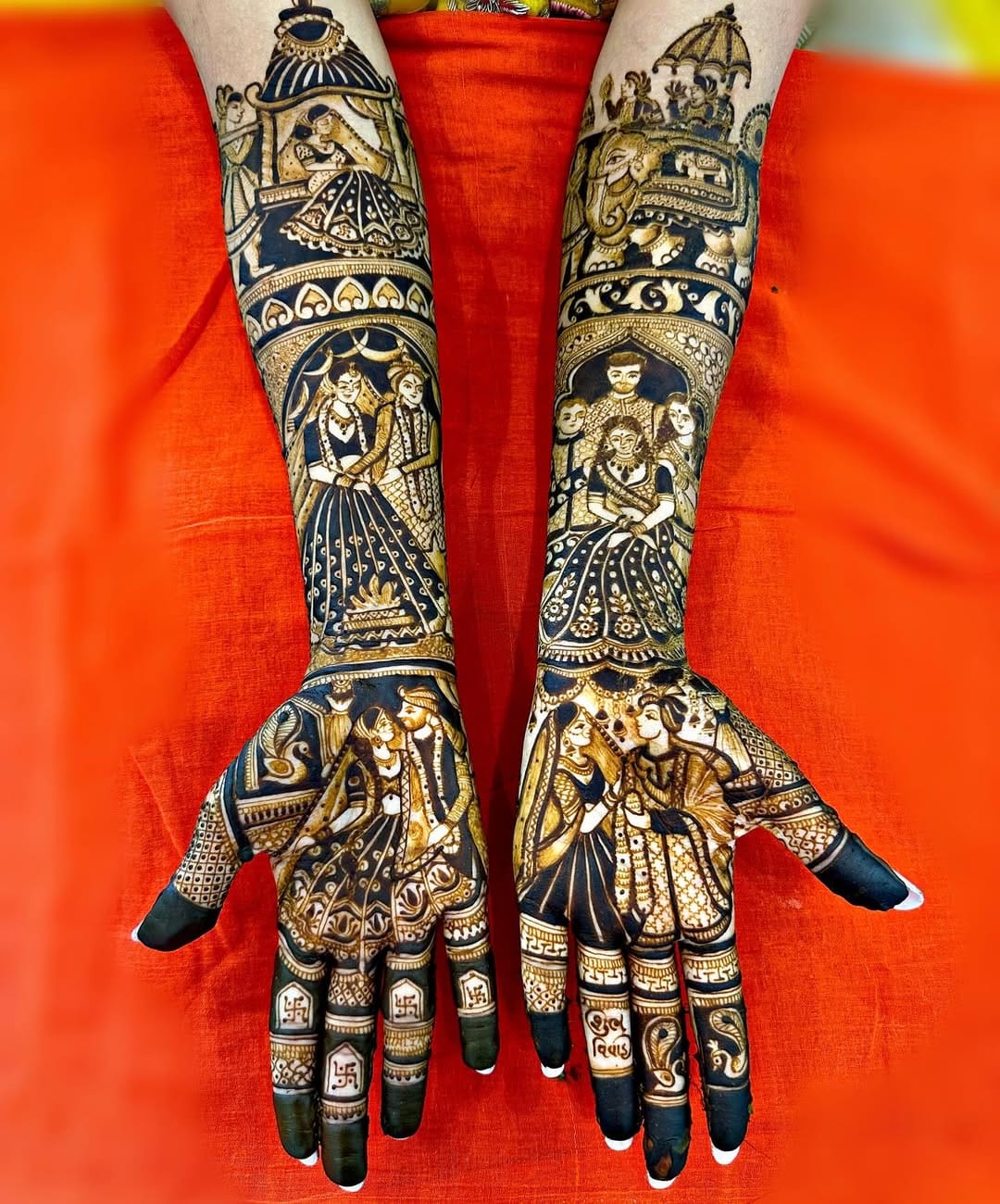 We use 100% natural, skin-safe mehndi and take pride in our punctual, hygienic, and professional service. Satendra’s signature style lies in storytelling through mehndi — where every motif holds meaning, and every detail celebrates joy.
